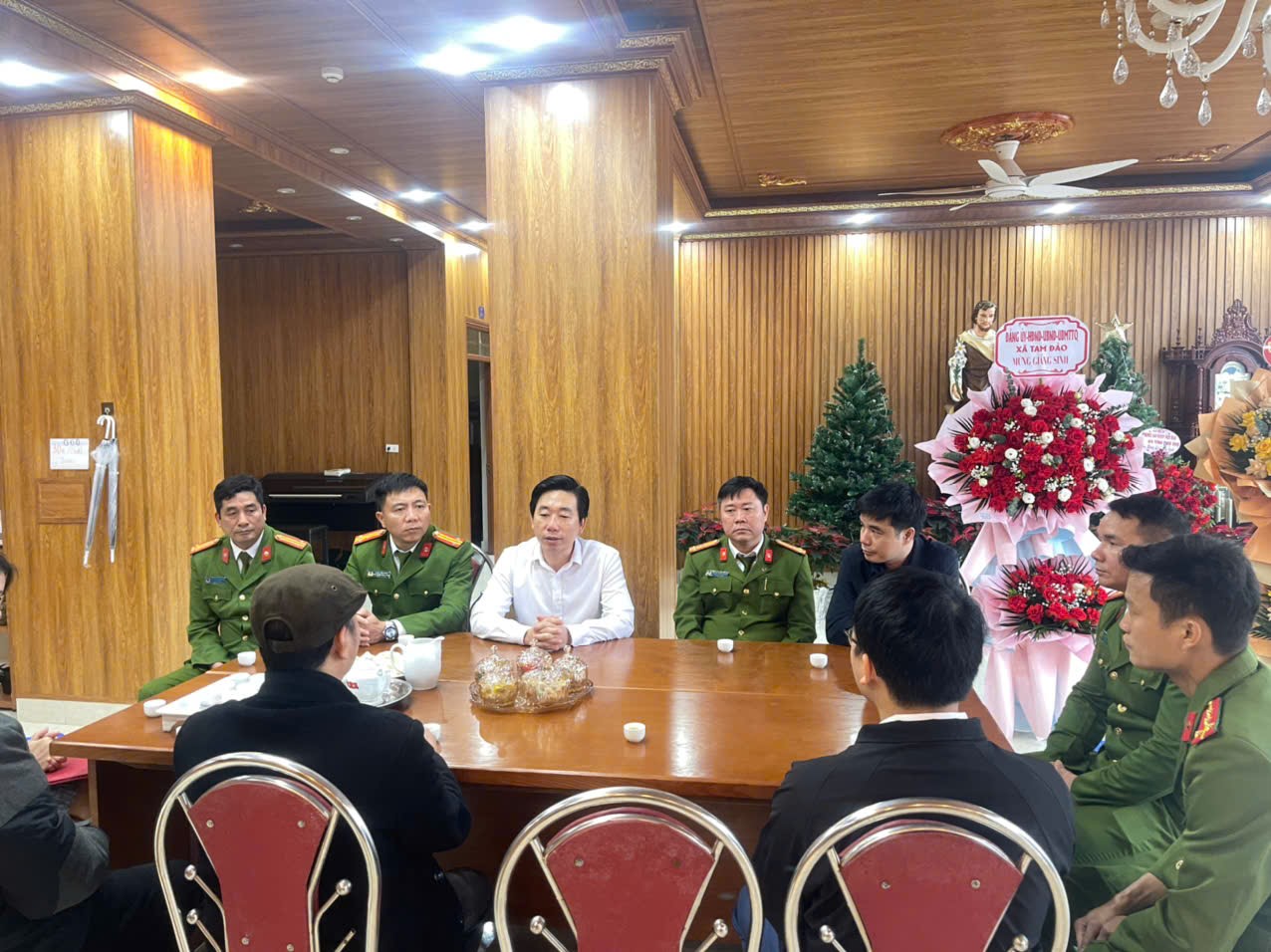 Tại buổi gặp mặt, đồng chí Trưởng Công an xã Tam Đảo đã gửi lời chúc mừng Giáng sinh an lành, hạnh phúc đến Linh mục, Hội đồng Giáo xứ và toàn thể bà con giáo dân. Đồng chí bày tỏ sự trân trọng đối với những đóng góp tích cực của Giáo xứ và bà con giáo dân trong việc chấp hành nghiêm chủ trương của Đảng, chính sách, pháp luật của Nhà nước; tích cực tham gia xây dựng đời sống văn hóa ở khu dân cư, giữ gìn an ninh, trật tự, góp phần ổn định tình hình tại địa phương.