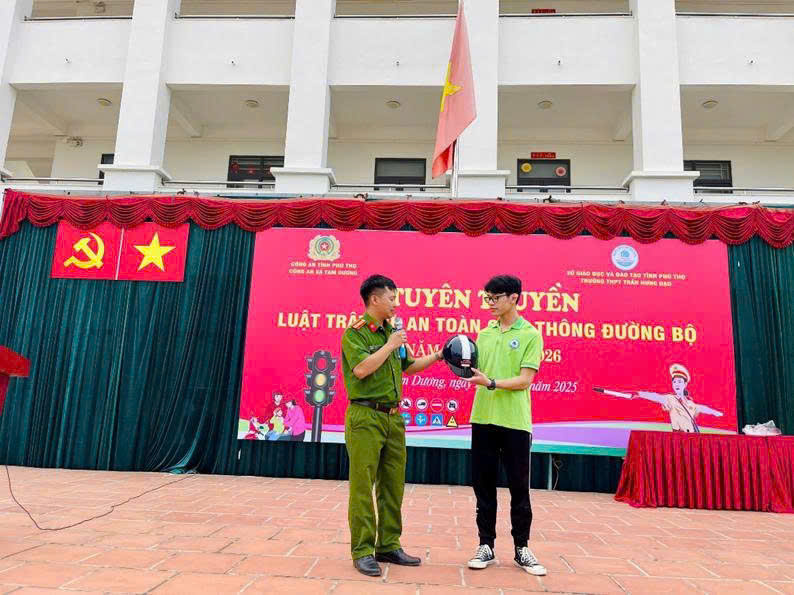 Thực hiện Kế hoạch số 2149/KH-CAT-PC08, ngày 26/8/2025 của Công an tỉnh Phú Thọ về công tác tuyên truyền, phổ biến, giáo dục pháp luật về trật tự, an toàn giao thông (TTATGT) những tháng cuối năm 2025, sáng 22/9/2025, Công an xã Tam Dương đã phối hợp với Trường THPT Trần Hưng Đạo tổ chức buổi tuyên truyền Luật Giao thông đường bộ cho cán bộ, giáo viên và học sinh nhà trường.