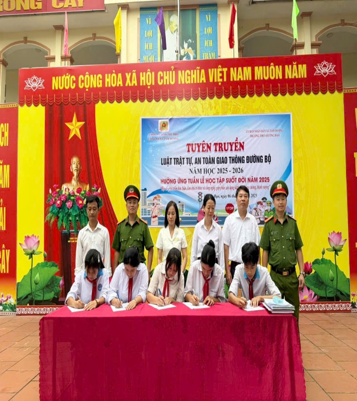Học sinh các lớp ký cam kết thực hiện nghiêm túc các quy định của pháp luật về TTATGT Đại diện Ban Giám hiệu Trường THCS Hướng Đạo đánh giá cao sự quan tâm và phối hợp của lực lượng Công an xã Tam Dương trong công tác tuyên truyền pháp luật, khẳng định đây là hoạt động có ý nghĩa thiết thực, mang lại nhiều kiến thức bổ ích, góp phần xây dựng môi trường giao thông an toàn, thân thiện trong nhà trường và cộng đồng.