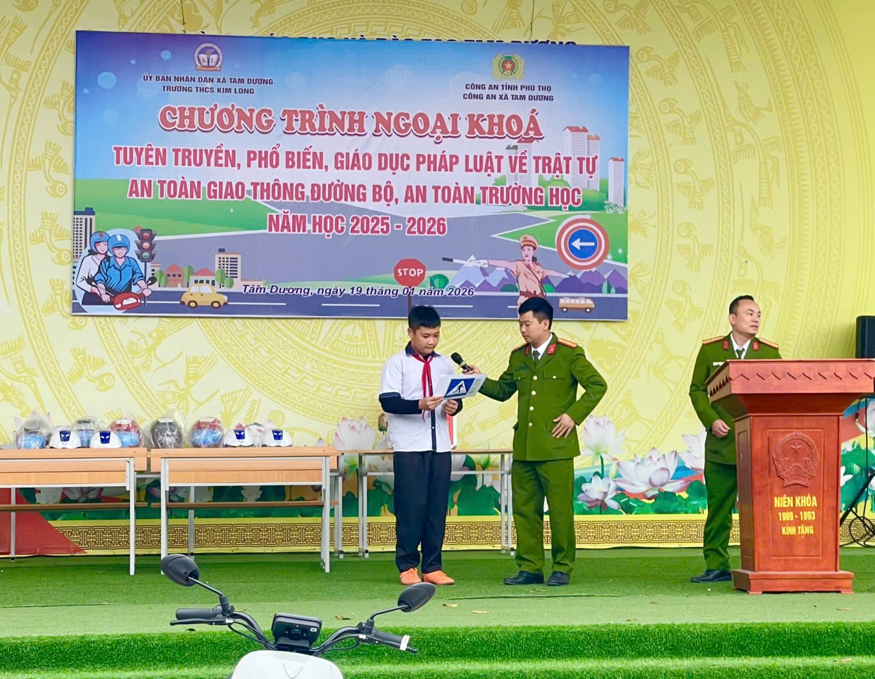 Ngày 19/01/2026, Công an xã Tam Dương đã phối hợp với Ban giám hiệu Trường THCS Kim Long tổ chức buổi tuyên truyền, phổ biến, giáo dục pháp luật về trật tự an toàn giao thông đường bộ và an toàn trường học năm học 2025 - 2026 cho 50 cán bộ giáo viên, nhân viên và 1312 học sinh của nhà trường.