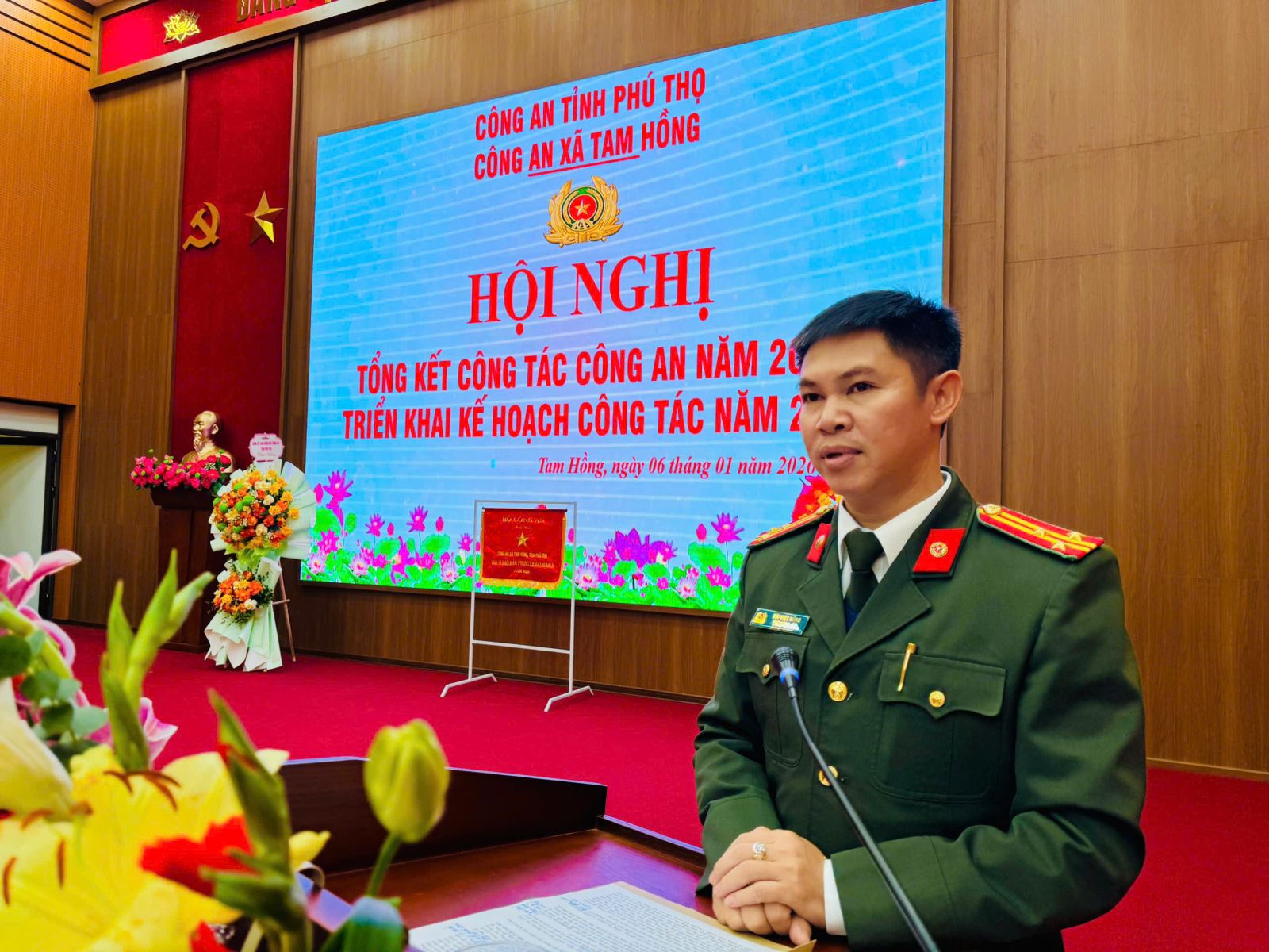 Phát biểu chỉ đạo tại hội nghị, đồng chí thượng tá Bùi Việt Hùng, Phó Giám đốc Công an tỉnh ghi nhận, biểu dương những kết quả Công an xã Tam Hồng đã đạt được trong năm 2025; đồng chí Phó Bí thư Đảng ủy, Phó giám đốc Công an tỉnh yêu cầu trong thời gian tới, đơn vị cần tiếp tục phát huy tinh thần chủ động, bám sát cơ sở, làm tốt công tác tham mưu; tập trung xây dựng lực lượng Công an xã chính quy, kỷ cương, gần dân; giữ vững ổn định an ninh, trật tự, phục vụ hiệu quả nhiệm vụ phát triển kinh tế - xã hội của địa phương.