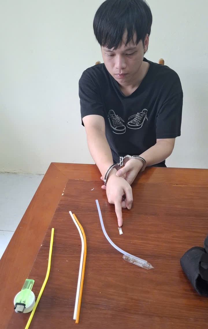 Quá trình kiểm tra, hai đối tượng tự giác giao nộp 01 đoạn ống nhựa hàn kín hai đầu bên trong có chất chất rắn dạng tinh thể màu trắng và 04 ống hút nhựa; 01 vỏ ống thủy tinh màu trắng nhãn hiệu ANTOT IQ, loại 10ml và 01 đoạn keo màu trắng. Chiến và Tuấn đều khai nhận chất rắn dạng tinh thể trên là ma túy đá được Tuấn và Chiến cùng mua để sử dụng. Các đồ vật khác dùng để chế dụng cụ sử dụng ma túy đá.