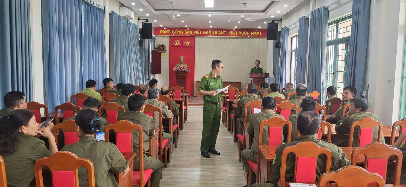 Đồng thời, đồng chí Phó Trưởng Công an xã cũng nhấn mạnh và quán triệt nghiêm túc, trong quá trình thực hiện nhiệm vụ nghiêm cấm lợi dụng việc cập nhật, bổ sung dữ liệu đăng ký, quản lý phương tiện, số hóa hồ sơ đăng ký xe và cập nhật mã định danh của người lái xe để hợp thức hóa xe gian, xe lậu, xe không có hồ sơ gốc, lựa chọn biển số xe định danh trái quy định hoặc giao tài khoản cho cán bộ sử dụng nhằm mục đích khác; hợp thức hóa giấy tờ xe không do cơ quan có thẩm quyền cấp.