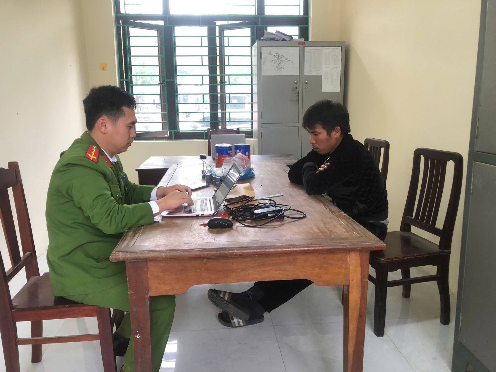 Anh Hoàng Vũ Hợp làm việc với Công an xã Tam Nông
