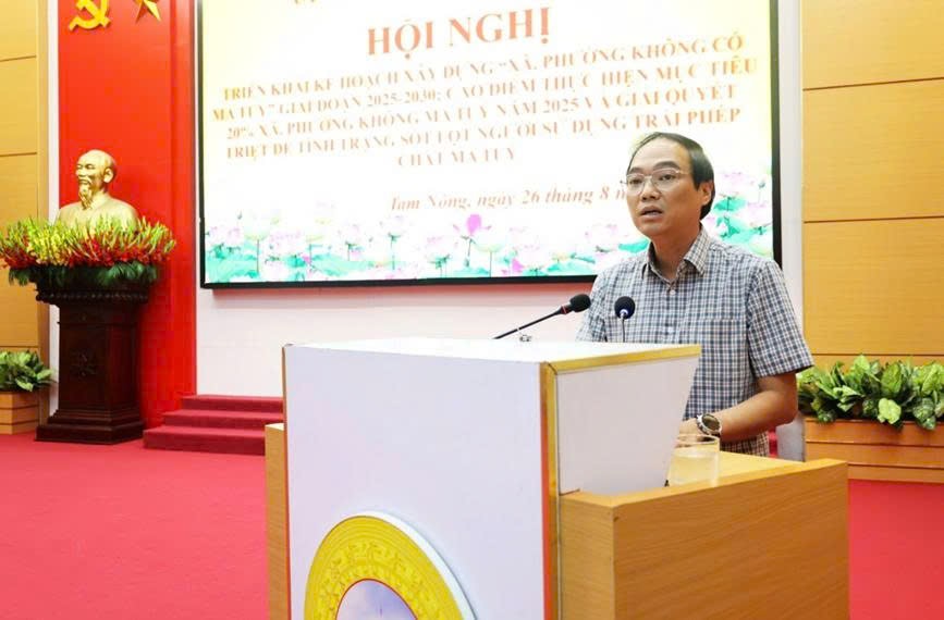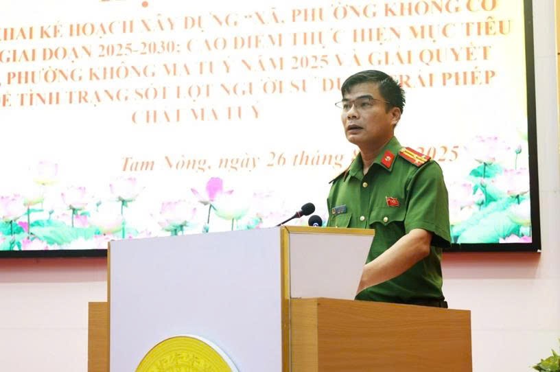 Ngày 26/8/2025, Công an xã Tam Nông tham mưu cho UBND xã Tam Nông tổ chức hội nghị triển khai Kế hoạch xây dựng “xã, phường không ma túy” giai đoạn 2025 - 2030 trên địa bàn xã; Cao điểm thực hiện mục tiêu 20% xã, phường không ma túy năm 2025 và giải quyết triệt để tình trạng sót lọt người sử dụng trái phép chất ma túy. Dự và chỉ đạo hội nghị có đồng chí Đỗ Hùng Sơn - Phó Bí thư, Chủ tịch UBND xã; đồng chí Nguyễn Tuấn Ngọc - Phó Bí thư Thường trực Đảng ủy xã; các đồng chí trong BTV Đảng ủy; lãnh đạo các phòng chuyên môn; lãnh đạo và chiến sỹ Công an xã; Bí thư chi bộ, Trưởng khu dân cư, Bí thư chi bộ Đảng các Nhà trường, cơ quan, đơn vị đóng trên địa bàn.