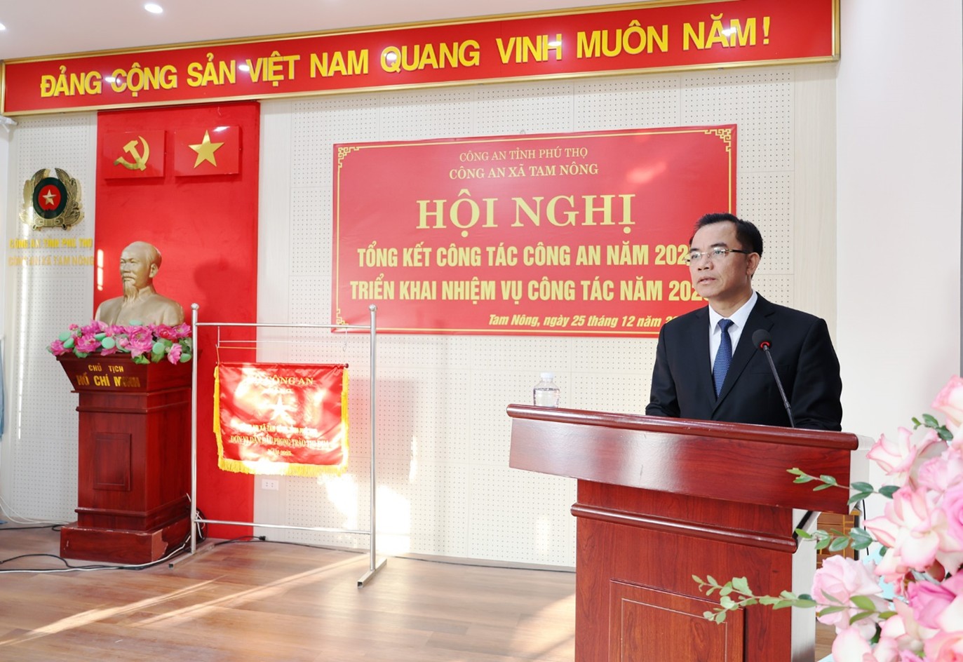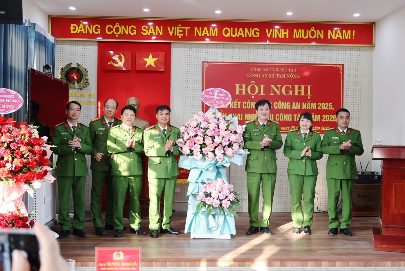 Chiều 25/12/2025, Công an xã Tam Nông tổ chức hội nghị tổng kết công tác Công an năm 2025 và triển khai chương trình công tác năm 2026. Dự và chỉ đạo hội nghị có đồng chí Đại tá Trương Quang Hải - Phó Giám đốc Công an tỉnh; đồng chí Quách Hải Lý - Bí thư Đảng ủy, Chủ tịch HĐND xã; đồng chí Đỗ Hùng Sơn - Phó Bí thư Đảng ủy, Chủ tịch UBND xã.