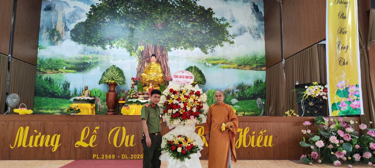 Nhân dịp đại lễ Vu Lan - Báo hiếu năm 2025, từ đầu tháng 9/2025, Công an xã Tam Sơn đã tổ chức thăm hỏi, tặng quà và chúc mừng các vị chức sắc, tăng ni, phật tử tại các cơ sở thờ tự trên địa bàn xã. Đồng thời nắm tình hình về quy mô, thời gian tổ chức của các cơ sở để kịp thời triển khai công tác đảm bảo ANTT.
