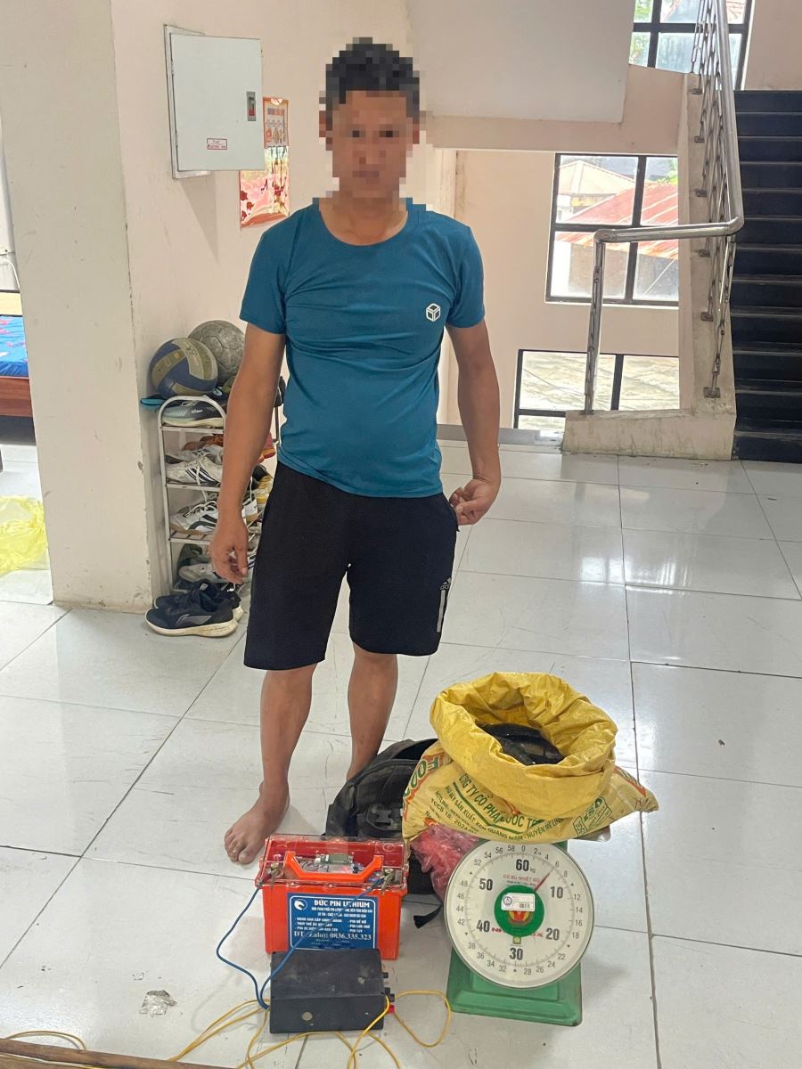 Trước đó, khoảng 16 giờ ngày 07/10/2025, trong quá trình tuần tra trên địa bàn, Tổ công tác Công an xã Tam Sơn phát hiện anh L.Đ.B đang có hành vi sử dụng thiết bị kích điện để khai thác thủy sản. Tang vật thu giữ gồm 01 bình ắc quy, 01 máy kích điện và một số dụng cụ vi phạm khác.