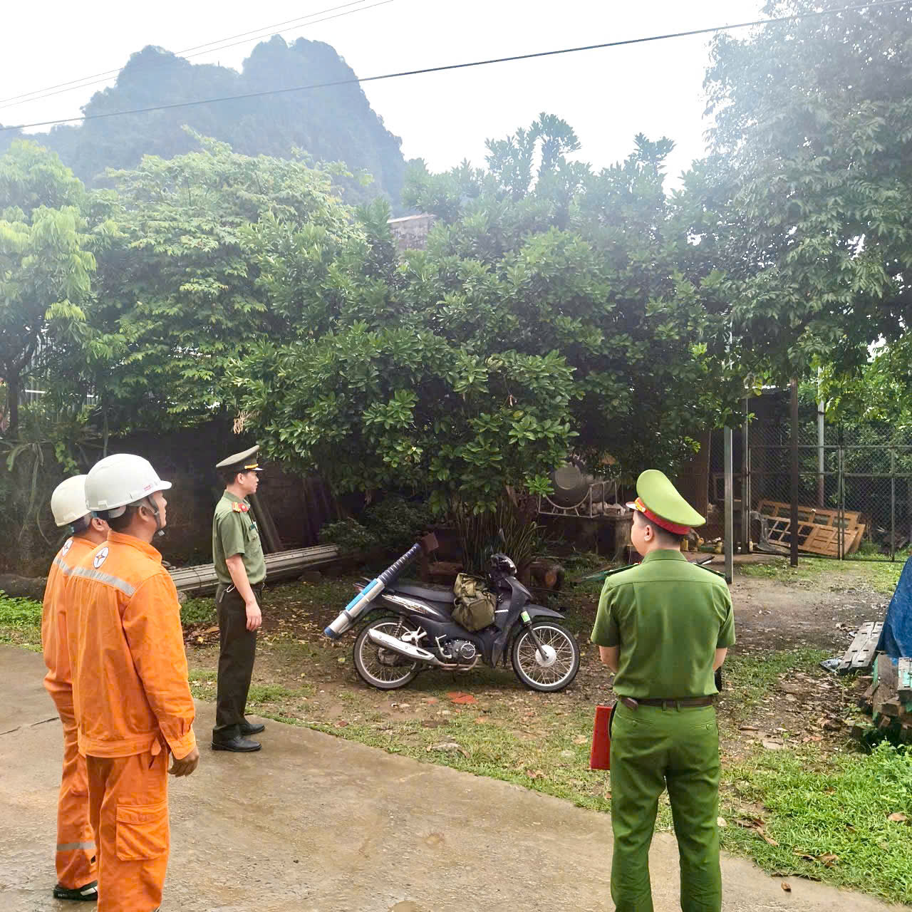Công an xã Tân Lạc phối hợp kiểm tra công tác quản lý, vận hành, bảo vệ hệ thống lưới điện