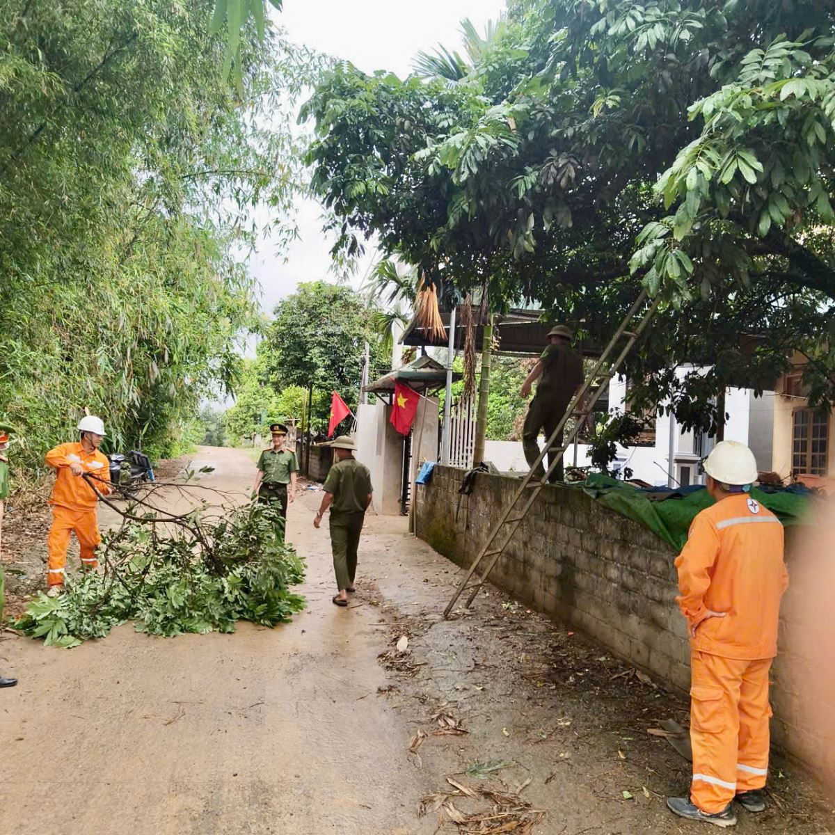 Công an xã Tân Lạc phối hợp phối hợp dọn dẹp, bảo vệ an toàn hành lang lưới điện