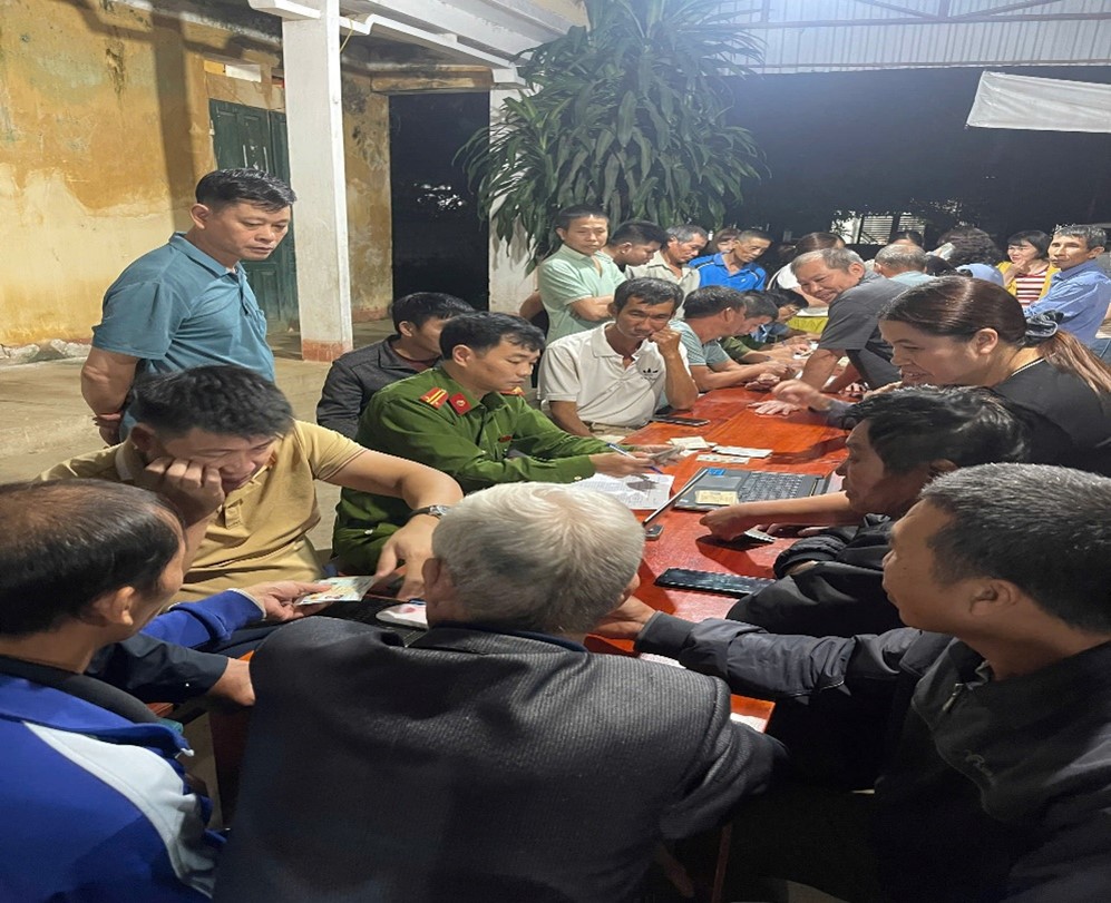 Lực lượng Công an xã Tân Lạc thu thập làm sạch dữ liệu đăng ký phương tiện và giấy phép lái xe