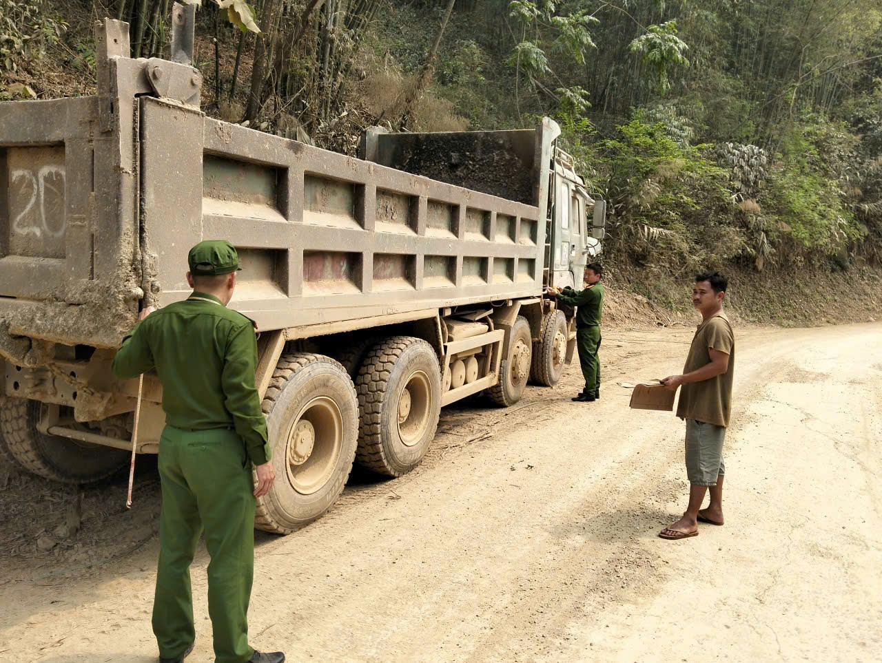 Công an xã Tân Mai Tăng Cường Kiểm Tra Phương Tiện Vận Tải Hạng Nặng