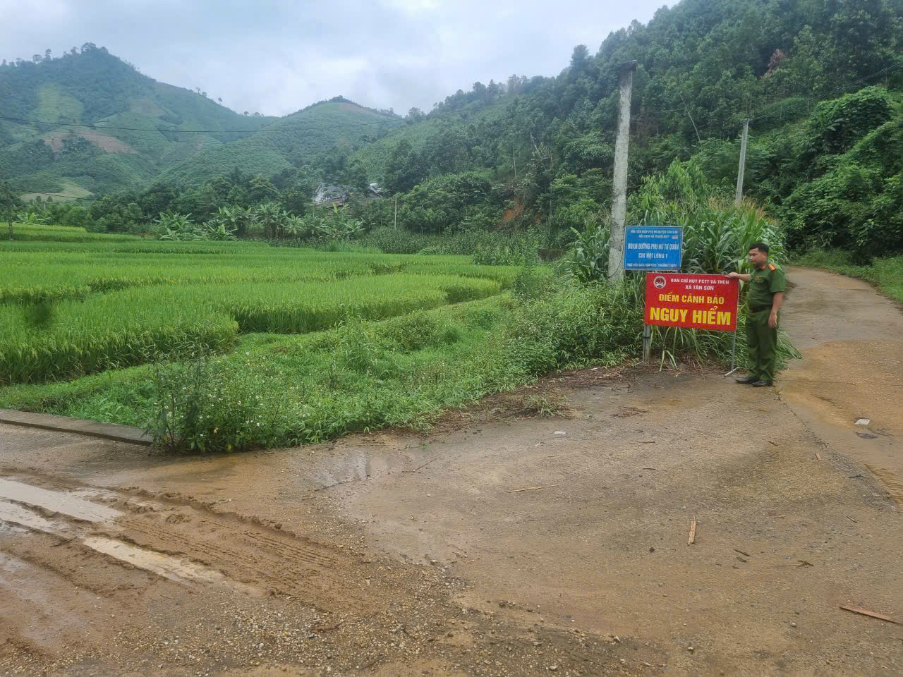 Qua kiểm tra thực tế, lực lượng Công an xã đã đặc biệt lưu ý đến các điểm ngầm tràn, ven sông suối và khu vực đồi dốc có nguy cơ sạt lở cao. Tại những vị trí xung yếu, Công an xã yêu cầu Tổ an ninh trật tự và các đoàn thể địa phương thường xuyên theo dõi mực nước, bố trí người trực gác cảnh báo, tuyệt đối không để người và phương tiện liều mình đi qua khi mất an toàn.