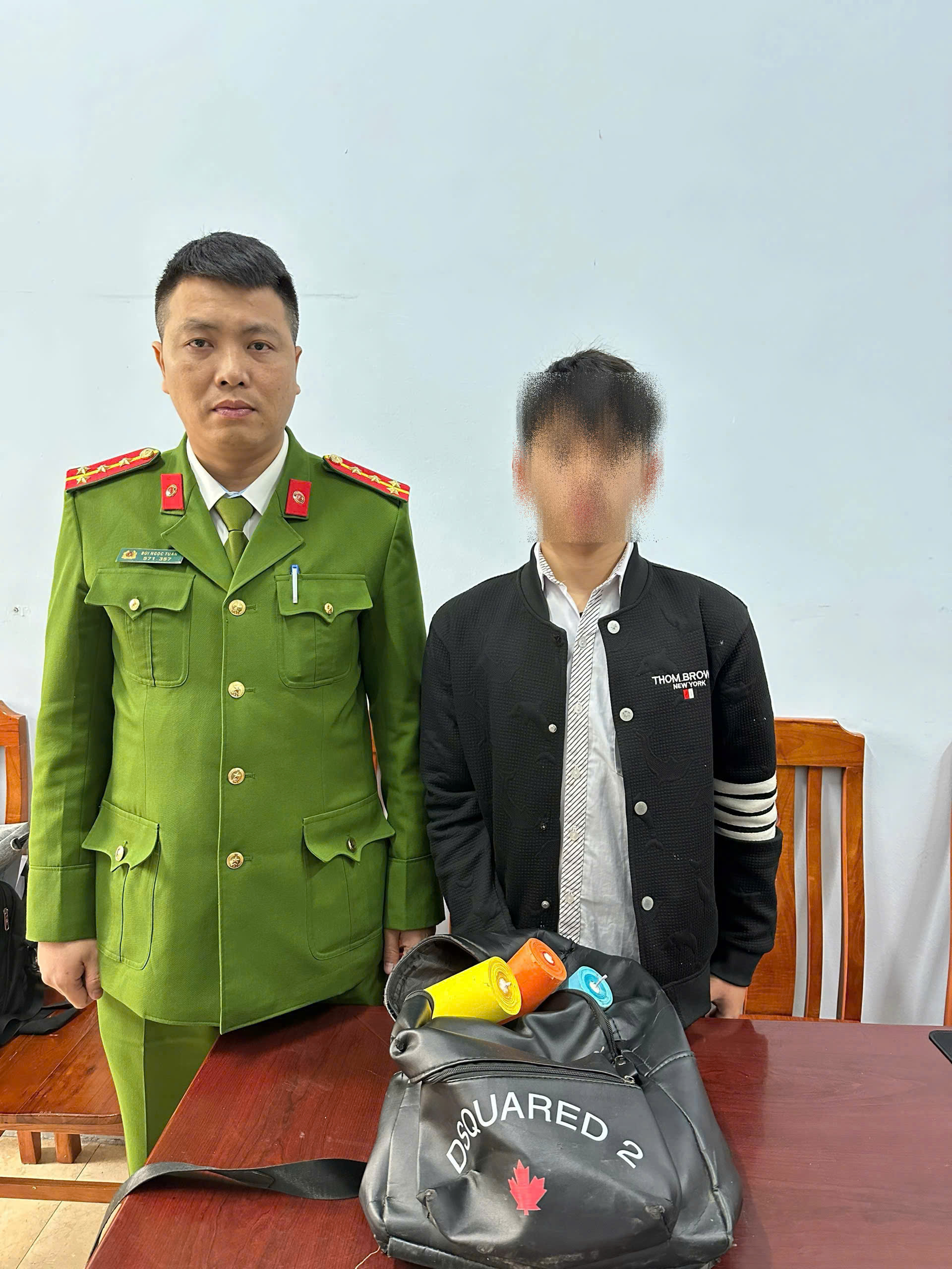 Tiến hành kiểm tra hành chính, lực lượng Công an xác định người này là L.T.N (sinh năm 2011, trú tại khu 2, xã Bằng Luân, tỉnh Phú Thọ). Qua kiểm tra ba lô đối tượng mang theo, phát hiện 13 khối hình trụ được bọc giấy nhiều màu sắc, nghi là pháo nổ. Tại thời điểm kiểm tra, đối tượng khai nhận số tang vật trên là pháo nổ tự chế đặt mua qua mạng xã hội và đang trên đường mang đi cất giấu.