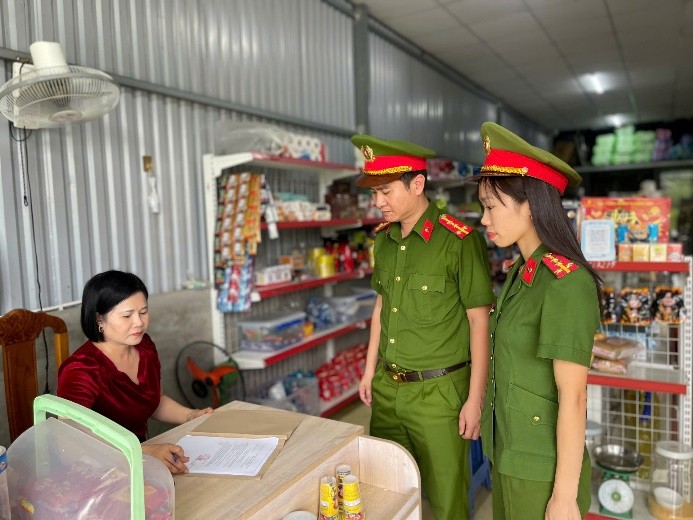 Công an xã Tề Lỗ kiểm tra an toàn thực phẩm quanh khu vực trường học