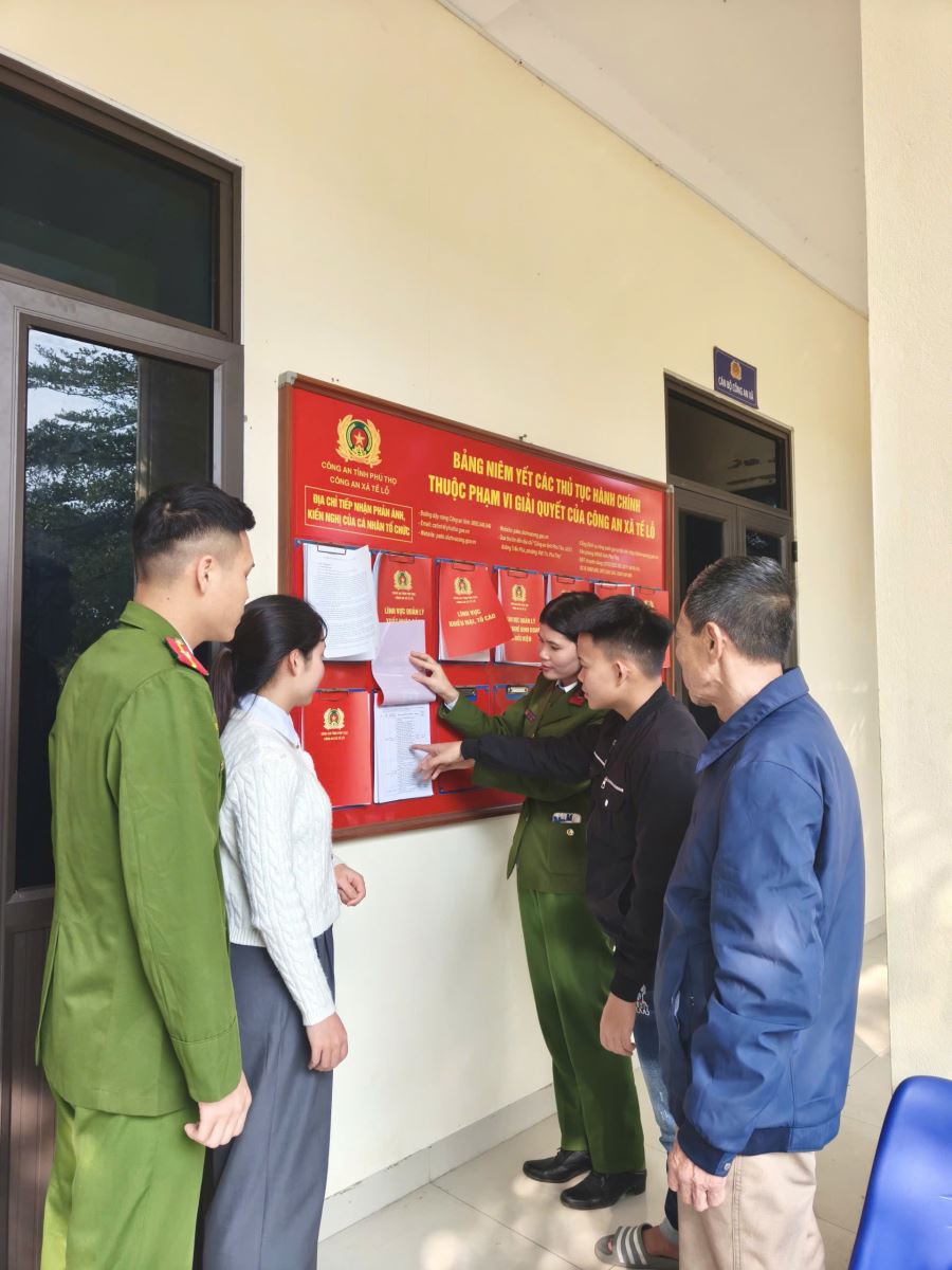 Bên cạnh việc giới thiệu danh mục thủ tục, cán bộ Công an xã Tề Lỗ còn hướng dẫn cụ thể về trình tự thực hiện, cách thức thực hiện, thời hạn giải quyết cũng như thành phần hồ sơ đối với từng thủ tục. Việc hướng dẫn được thực hiện theo hướng rõ ràng, dễ hiểu, giúp cá nhân, tổ chức nắm bắt đầy đủ thông tin, chủ động chuẩn bị hồ sơ, hạn chế việc đi lại nhiều lần, qua đó nâng cao hiệu quả giải quyết thủ tục hành chính ở cấp xã.