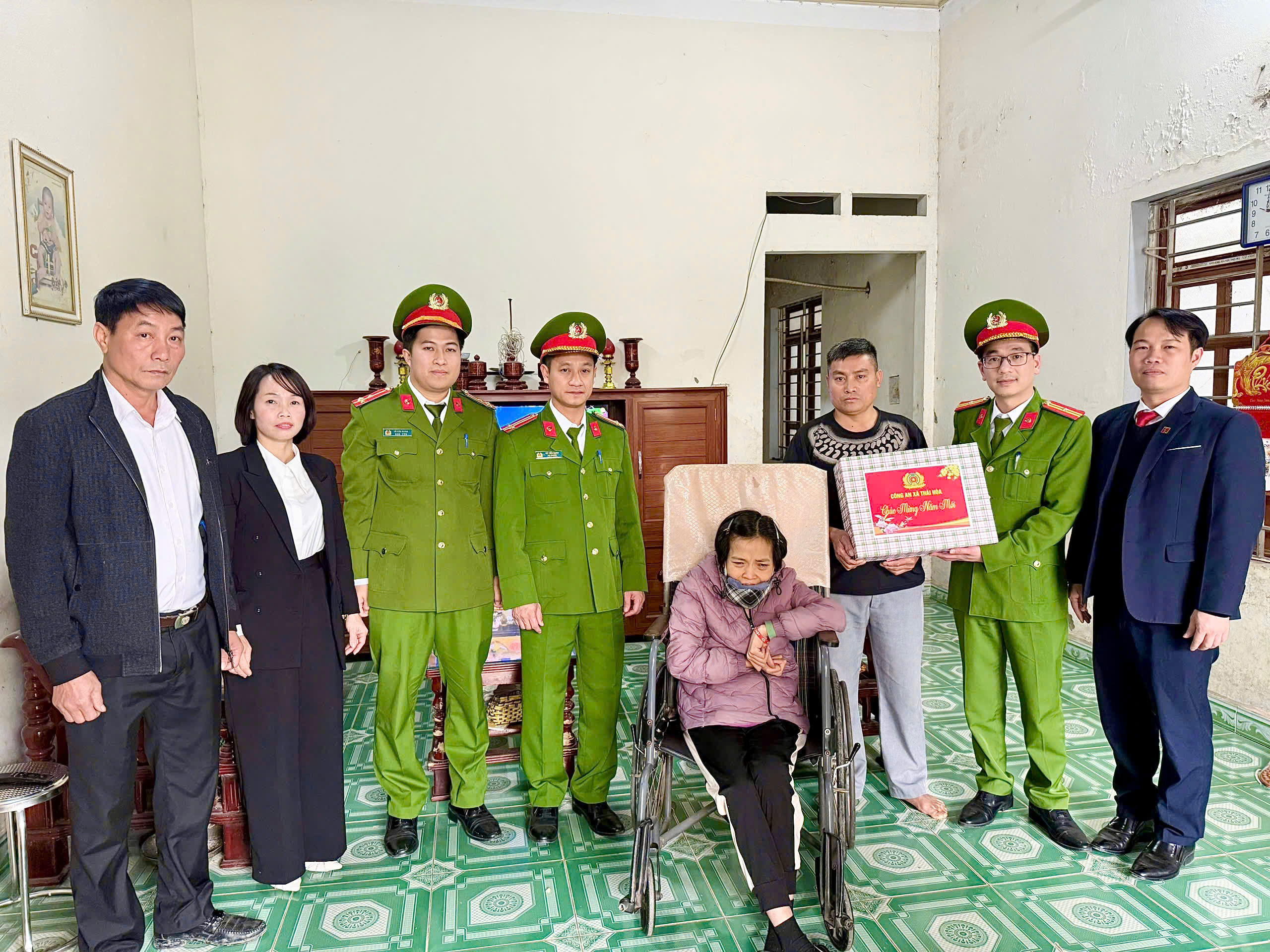 Hình ảnh Công an xã Thái Hòa phối hợp Ngân hàng Agribank chi nhánh Lập Thạch thăm và tặng quà các gia đình có hoàn cảnh khó khăn trên địa bàn Thay mặt đơn vị, Thiếu tá Nguyễn Văn Nhàn, Trưởng Công an xã Thái Hòa chia sẻ, đây là hoạt động thường niên mang ý nghĩa nhân văn sâu sắc, thể hiện tinh thần trách nhiệm của lực lượng Công an xã trong công tác chăm lo đời sống nhân dân. Những phần quà tuy giá trị vật chất không lớn nhưng là nguồn động viên tinh thần kịp thời, giúp các gia đình vơi bớt khó khăn, đón Tết cổ truyền đầm ấm và đầy đủ hơn.
