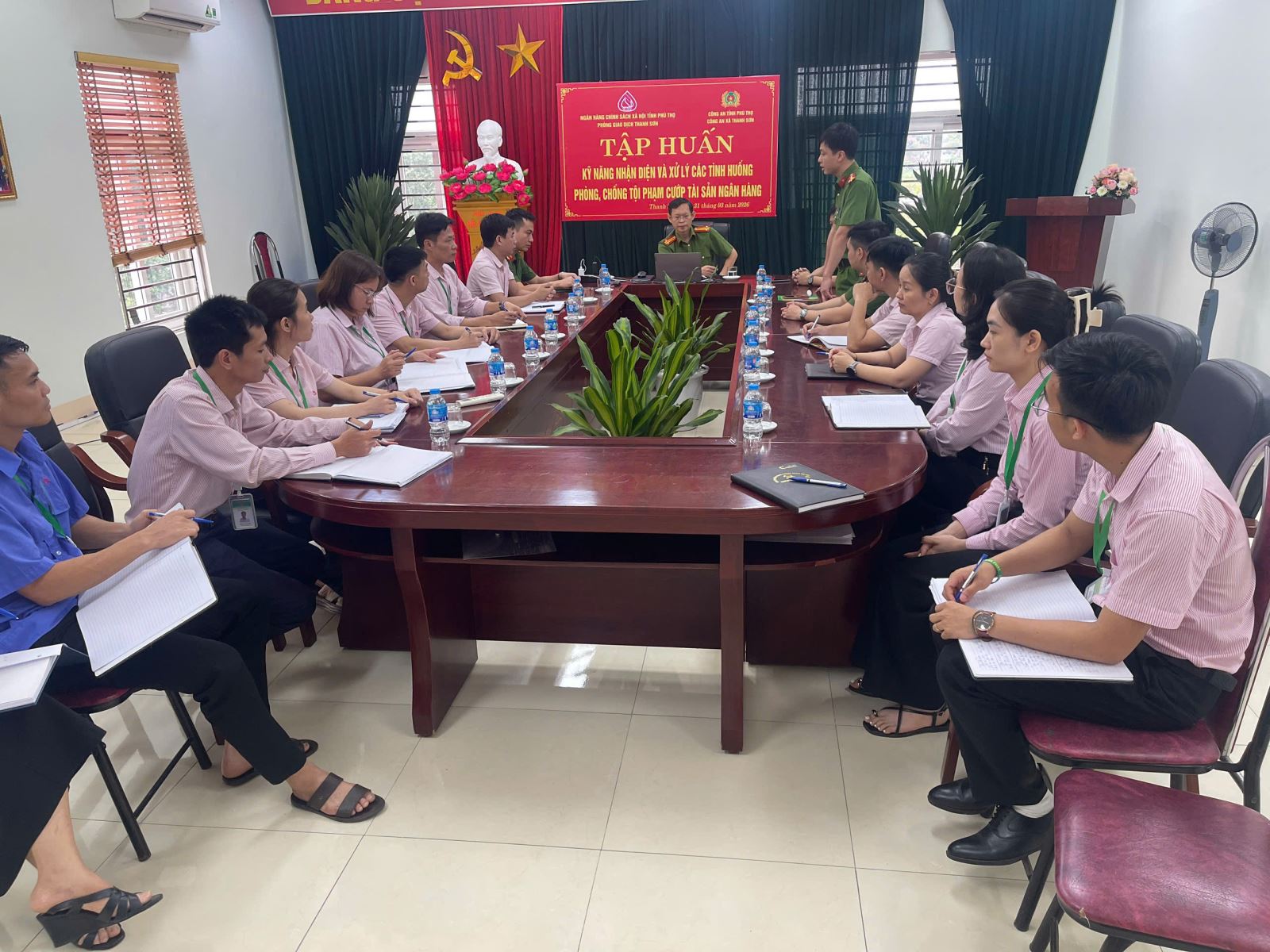 Công an xã Thanh Sơn phối hợp tập huấn kỹ năng phòng, chống cướp tài sản tại Ngân hàng Chính sách xã hội chi nhánh Thanh Sơn (03/04/2026)
