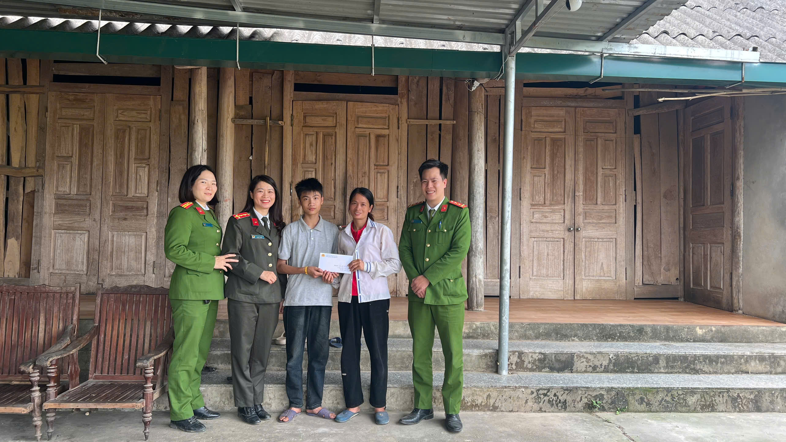 Cháu Nguyễn Văn Dương, sinh năm 2013, trú tại Khu Liên Đồng, xã Thanh Sơn, là trường hợp có hoàn cảnh gia đình khó khăn, được Công an xã Thanh Sơn nhận đỡ đầu trong mô hình “Con nuôi Công an xã”. Tại buổi đến thăm, cán bộ Công an xã đã trực tiếp trao số tiền hỗ trợ 6 triệu đồng, là kinh phí hỗ trợ cho 6 tháng đầu năm 2026 nhằm góp phần giúp gia đình có thêm điều kiện chăm lo việc học tập và sinh hoạt của cháu.