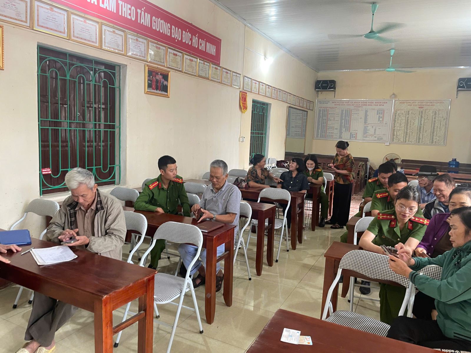 Việc hướng dẫn đảng viên và Nhân dân tham gia góp ý văn kiện Đại hội Đảng không chỉ góp phần tiết kiệm thời gian, chi phí mà còn góp phần đẩy mạnh chuyển đổi số trong công tác quản lý hành chính. Thông qua hoạt động này, cán bộ chiến sĩ Công an xã một lần nữa hướng dẫn công dân sử dụng, khai thác các tiện ích của ứng dụng VNeID, tích hợp sổ sức khỏe điện tử.