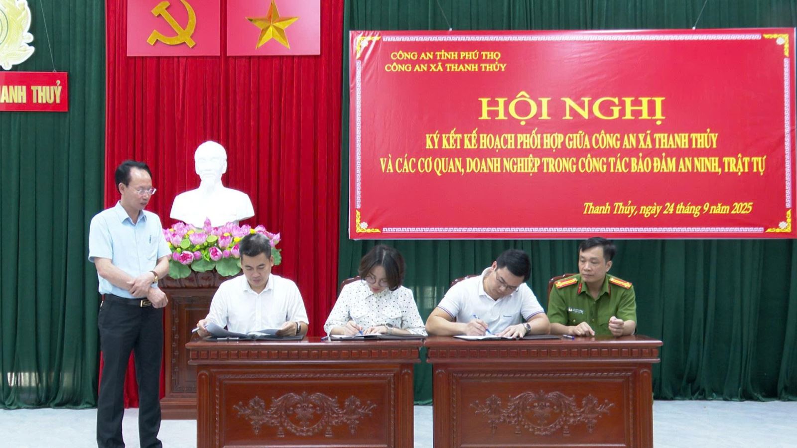 Công an xã Thanh Thuỷ ký kết kế hoạch phối hợp với các cơ quan, doanh nghiệp trong công tác bảo đảm an ninh, trật tự (05/10/2025)