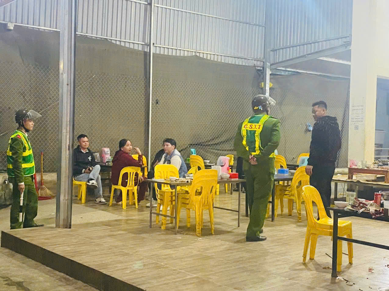 Lực lượng Công an xã phối hợp Phòng Kinh tế - UBND xã Thịnh Minh kiểm tra, phát hiện, nhắc nhở hàng quán kinh doanh, hát karaoke quá giờ quy định