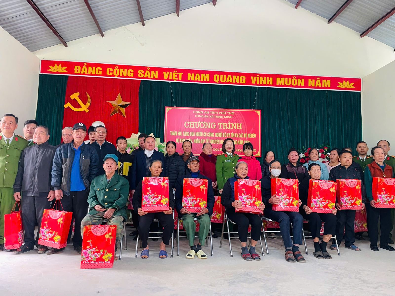 Nhân dịp Tết Nguyên đán Bính Ngọ năm 2026, Công an xã Thịnh Minh, tỉnh Phú Thọ đã tổ chức chương trình thăm hỏi, tặng quà người có công với cách mạng, người có uy tín và các hộ nghèo, hoàn cảnh khó khăn trên địa bàn. Đây là hoạt động thiết thực nhằm tiếp tục thực hiện nội dung “Gần dân nhất” trong phong trào thi đua “Ba nhất”.