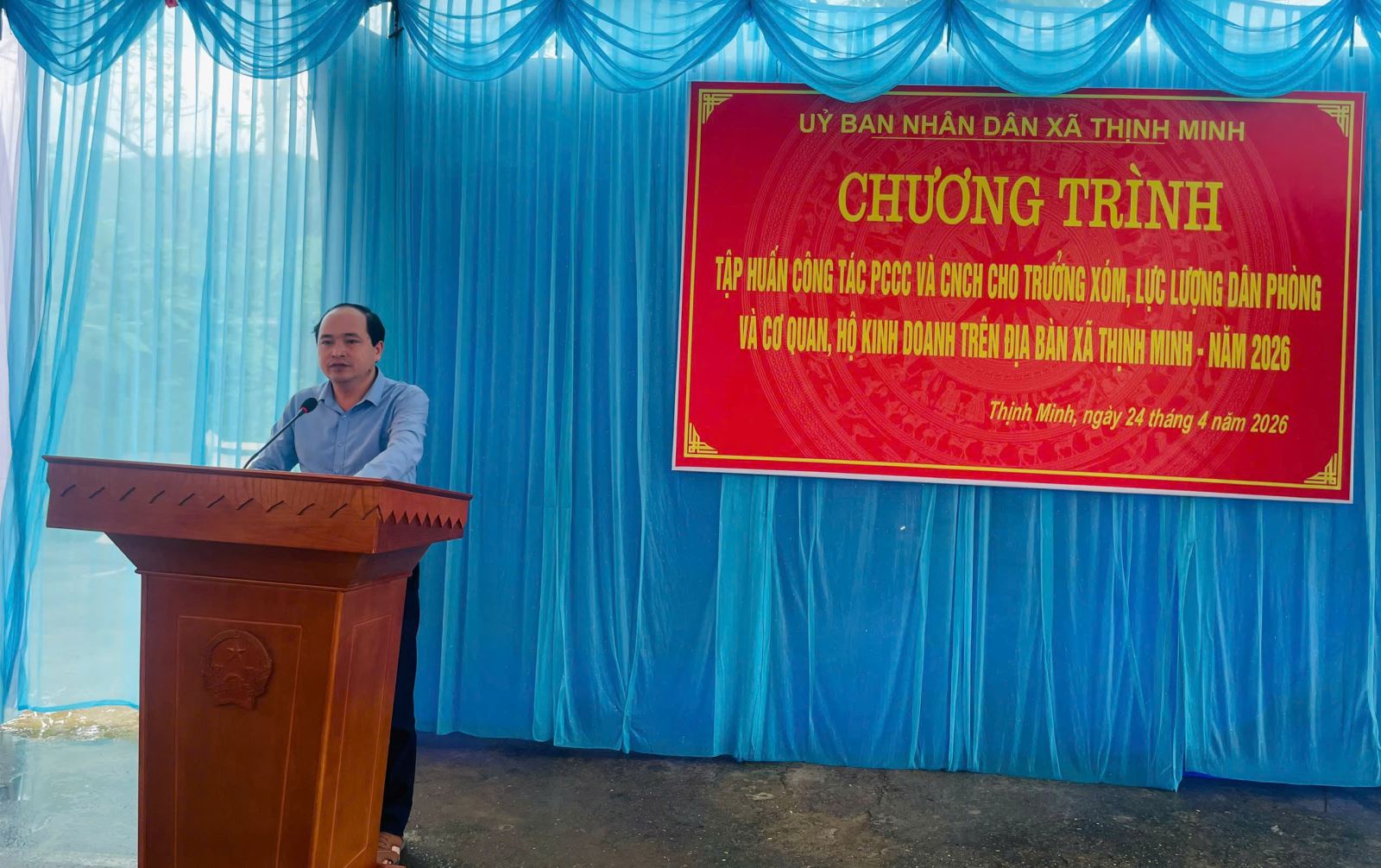 Nhằm nâng cao kiến thức, kỹ năng phòng cháy, chữa cháy và cứu nạn, cứu hộ cho lực lượng cơ sở và Nhân dân, sáng 24/4/2026, Công an xã Thịnh Minh đã tổ chức chương trình huấn luyện nghiệp vụ, tuyên truyền và trải nghiệm thực hành phòng cháy, chữa cháy, cứu nạn, cứu hộ trên địa bàn xã.