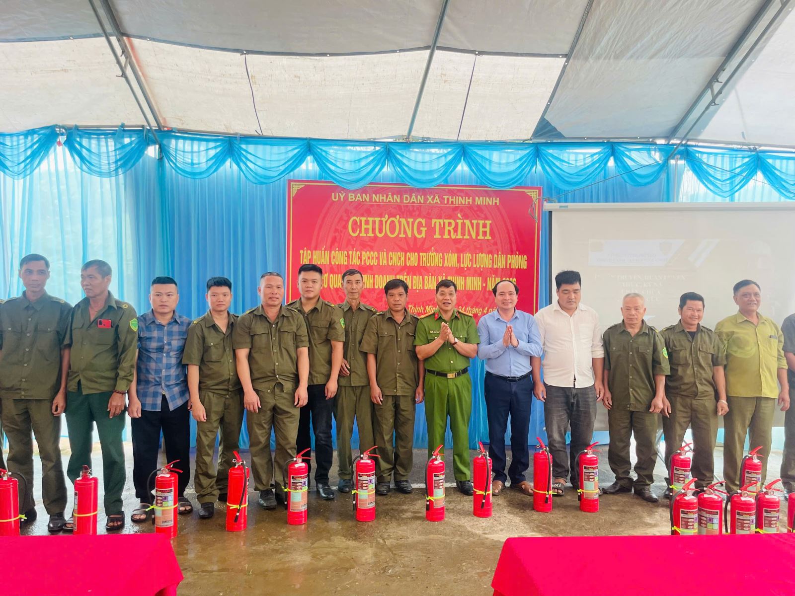 Nhân dịp này, chính quyền địa phương và Công an xã Thịnh Minh đã trao tặng 61 bình chữa cháy cho các hộ gia đình có hoàn cảnh khó khăn trên địa bàn nhằm hỗ trợ người dân trang bị phương tiện chữa cháy ban đầu, nâng cao điều kiện bảo đảm an toàn phòng cháy tại hộ gia đình.