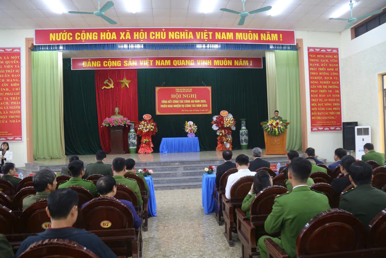 Chiều ngày 30/12/2025, Công an xã Thổ Tang, tỉnh Phú Thọ tổ chức Hội nghị tổng kết công tác Công an năm 2025, triển khai nhiệm vụ công tác năm 2026. Dự và chỉ đạo Hội nghị có đồng chí Đại tá Bùi Quang Khoa, Ủy viên Ban Thường vụ Đảng ủy, Phó Giám đốc Công an tỉnh. Cùng dự có đại diện lãnh đạo các phòng nghiệp vụ Công an tỉnh; cấp ủy, chính quyền địa phương và toàn thể CBCS Công an xã Thổ Tang.