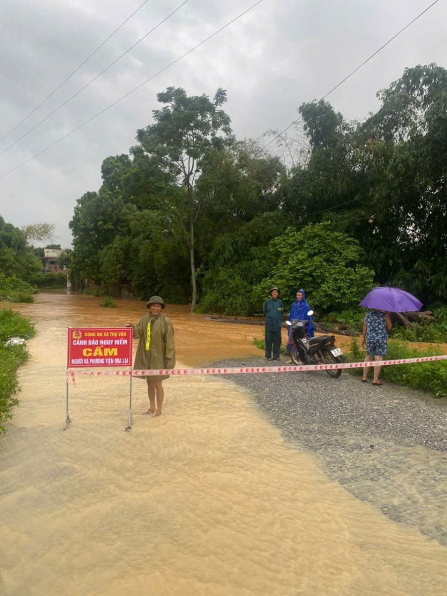 Trước tình hình trên, Công an xã Thọ Văn đã huy động tối đa lực lượng, phương tiện, khẩn trương đến từng hộ dân trong khu vực nguy hiểm để tổ chức di dời người và tài sản đến nơi an toàn. Đồng thời, đơn vị thiết lập các chốt trực tại những điểm ngập sâu, cắm biển cảnh báo, rào chắn, kiên quyết ngăn người dân không đi vào khu vực nguy hiểm.