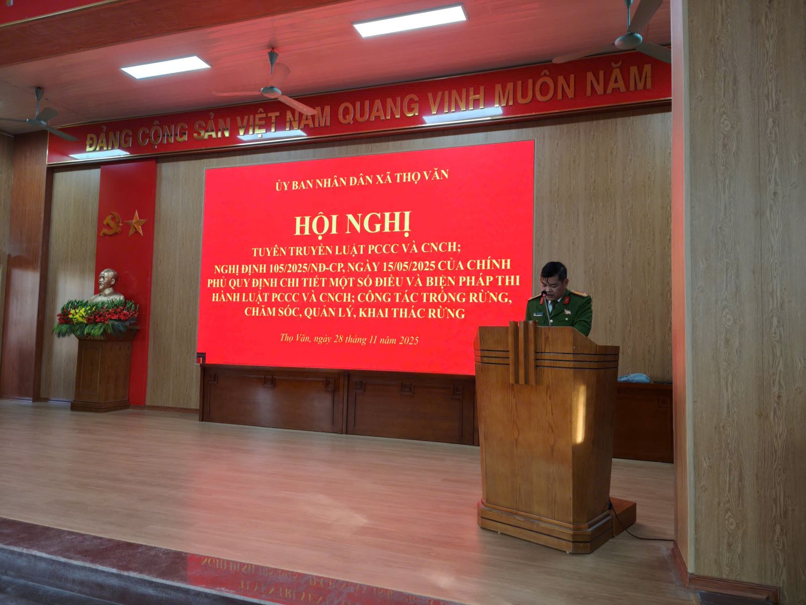 Trong bối cảnh thời tiết diễn biến phức tạp, nguy cơ cháy nổ và cháy rừng gia tăng theo mùa khô, việc trang bị kiến thức pháp luật và kỹ năng xử lý tình huống cho các cơ sở kinh doanh, hộ gia đình quản lý rừng là yêu cầu quan trọng. Sáng 28/11/2025, Công an xã Thọ Văn phối hợp các đơn vị chức năng tổ chức Hội nghị tuyên truyền pháp luật về phòng cháy, chữa cháy, cứu nạn cứu hộ (PCCC và CNCH) và công tác quản lý, khai thác rừng trên địa bàn.