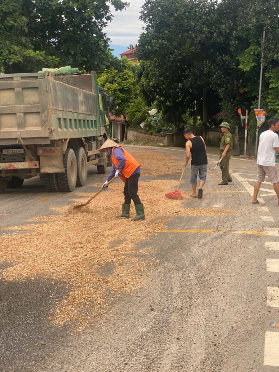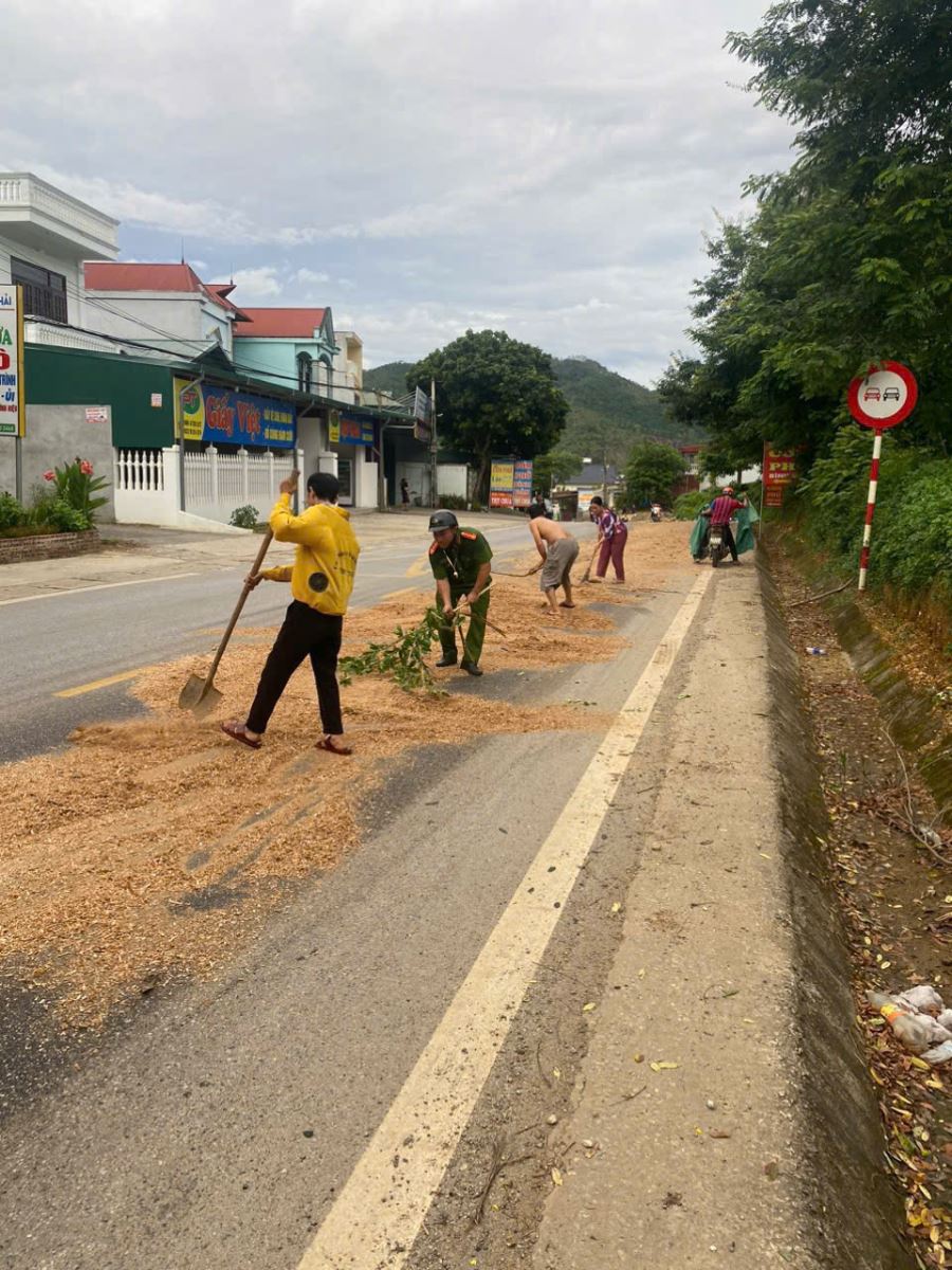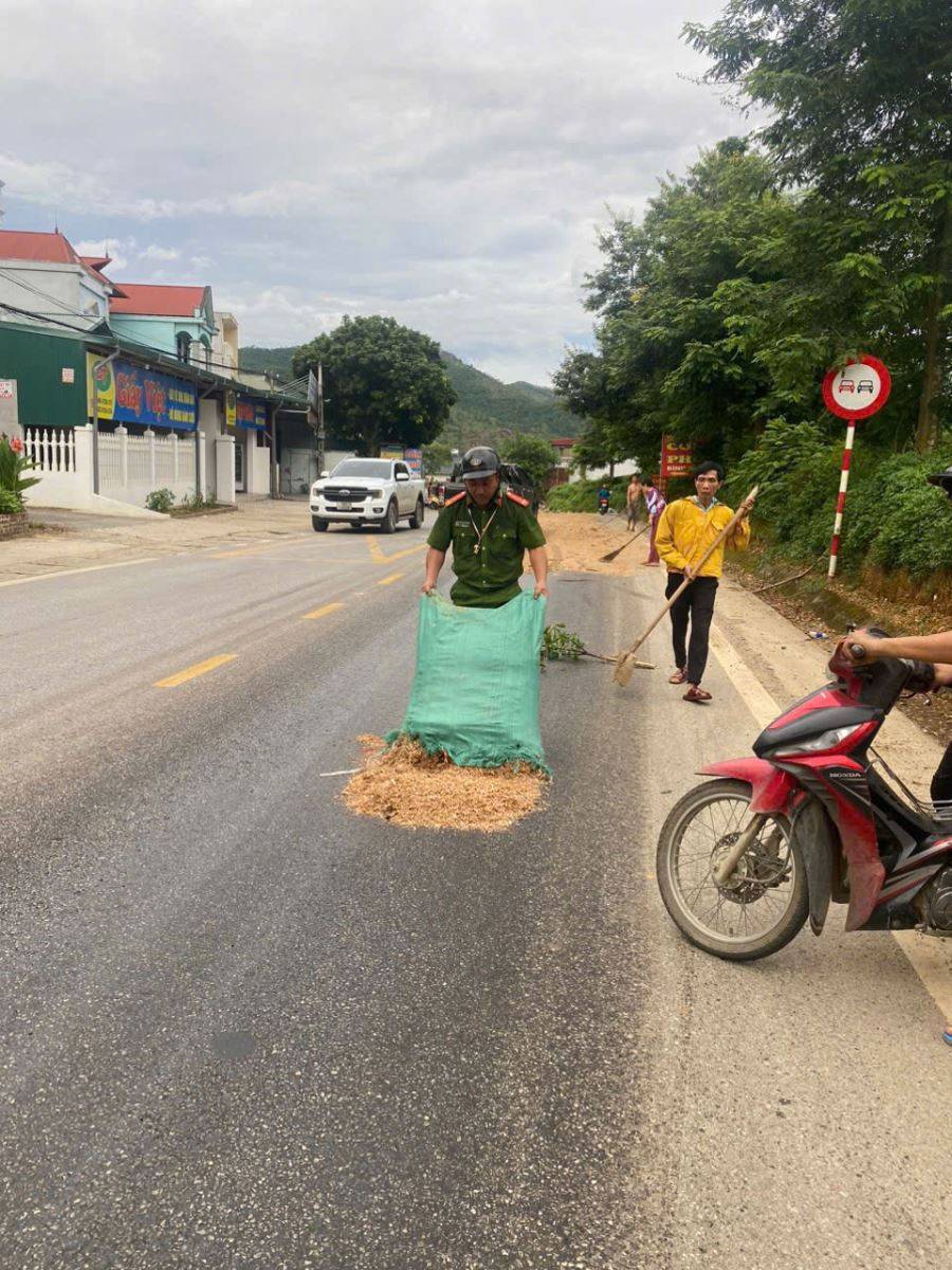 Nhận được tin báo, Công an xã Thục Luyện, huyện Thanh Sơn đã khẩn trương huy động lực lượng bảo vệ ANTT tại cơ sở phối hợp nhanh chóng có mặt tại địa điểm xảy ra sự cố tiến hành phân luồng, điều tiết giao thông. Đồng thời, phối hợp với quần chúng nhân dân khắc phục đoạn đường bị đổ dầu nhớt bằng cách sử dụng mùn cám cưa, cát để che phủ, hút dầu đổ.