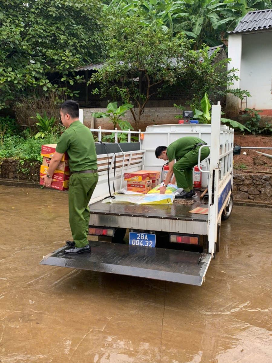 Các vật tư được các cán bộ xã chuẩn bị kỹ cho đợt phòng tránh bão Bên cạnh công tác bảo đảm an toàn, lực lượng công an xã còn trực tiếp hỗ trợ vận chuyển đồ đạc, cung cấp nhu yếu phẩm, thăm hỏi và động viên bà con yên tâm tạm lánh, ổn định cuộc sống trong thời gian mưa bão.