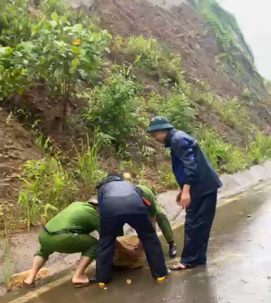 Ngoài ra, Công an xã còn phân công cán bộ chiến sỹ phân luồng, hướng dẫn người tham gia giao thông, đồng thời tham mưu, tổ chức cắm biển cảnh báo Nhân dân không đi vào các khu vực sạt lở nguy hiểm.