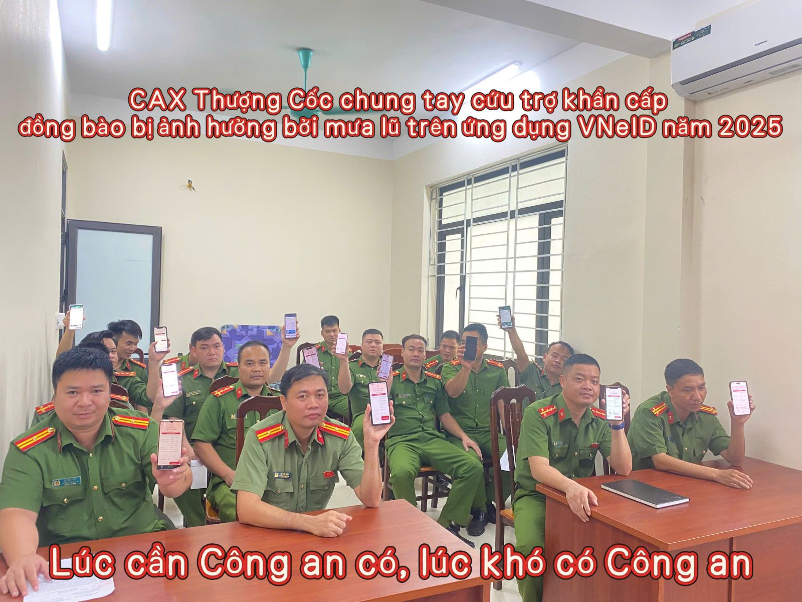 Thiết thực ủng hộ “Chương trình chung tay cứu trợ khẩn cấp đồng bào bị ảnh hưởng bởi lũ lụt trên nền tảng ứng dụng VNeID năm 2025” do Bộ Công an và Công an tỉnh Phú Thọ phát động, ngày 14/10/2025, Công an xã Thượng Cốc đã tổ chức triển khai thực hiện đến toàn thể cán bộ, chiến sĩ trong đơn vị.