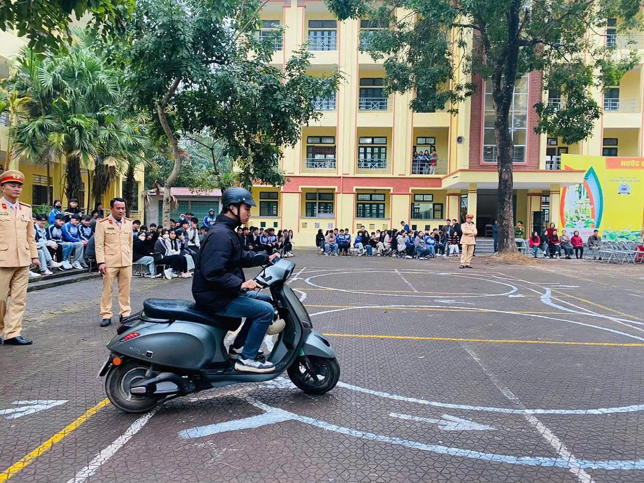 Đối với lĩnh vực trật tự an toàn giao thông, lực lượng Công an tập trung tuyên truyền các quy định về độ tuổi điều khiển phương tiện, điều kiện tham gia giao thông theo quy định của pháp luật; nhấn mạnh việc đội mũ bảo hiểm đúng quy cách, không phóng nhanh, vượt ẩu, không chở quá số người quy định, không điều khiển phương tiện khi chưa đủ điều kiện. Bên cạnh đó, học sinh được hướng dẫn những kỹ năng cơ bản khi tham gia giao thông, kỹ năng lái xe an toàn, xử lý một số tình huống thường gặp, góp phần phòng tránh tai nạn giao thông và bảo đảm an toàn cho bản thân cũng như cộng đồng.