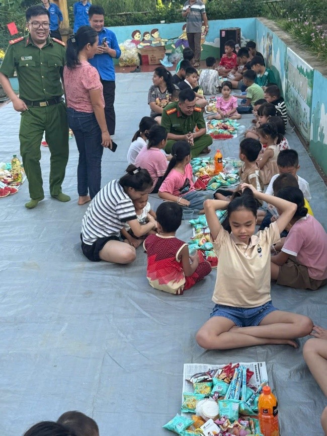 Đêm hội Trăng rằm” cho các cháu thiếu nhi tại địa phương. Xóm Điêng Lựng có 99 hộ dân với 408 nhân khẩu, trong đó có 68 em nhỏ. Chương trình diễn ra sôi nổi, vui tươi với nhiều tiết mục văn nghệ, trò chơi dân gian và màn rước đèn Trung thu rực rỡ sắc màu. Các phần quà được trao tận tay các em, thể hiện tinh thần trách nhiệm, tình cảm yêu thương của lực lượng Công an đối với thế hệ mầm non của đất nước.