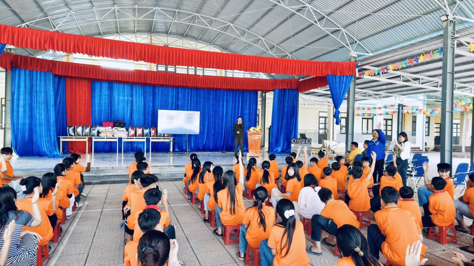 Chiều ngày 20/01/2026, Công an xã Tiền Phong phối hợp với Đoàn Thanh niên Cộng sản Hồ Chí Minh xã và Trung tâm Học tập cộng đồng tổ chức chương trình tuyên truyền, giáo dục pháp luật gắn với hoạt động an sinh xã hội tại Trường Phổ thông Dân tộc Bán trú THCS xã Tiền Phong.