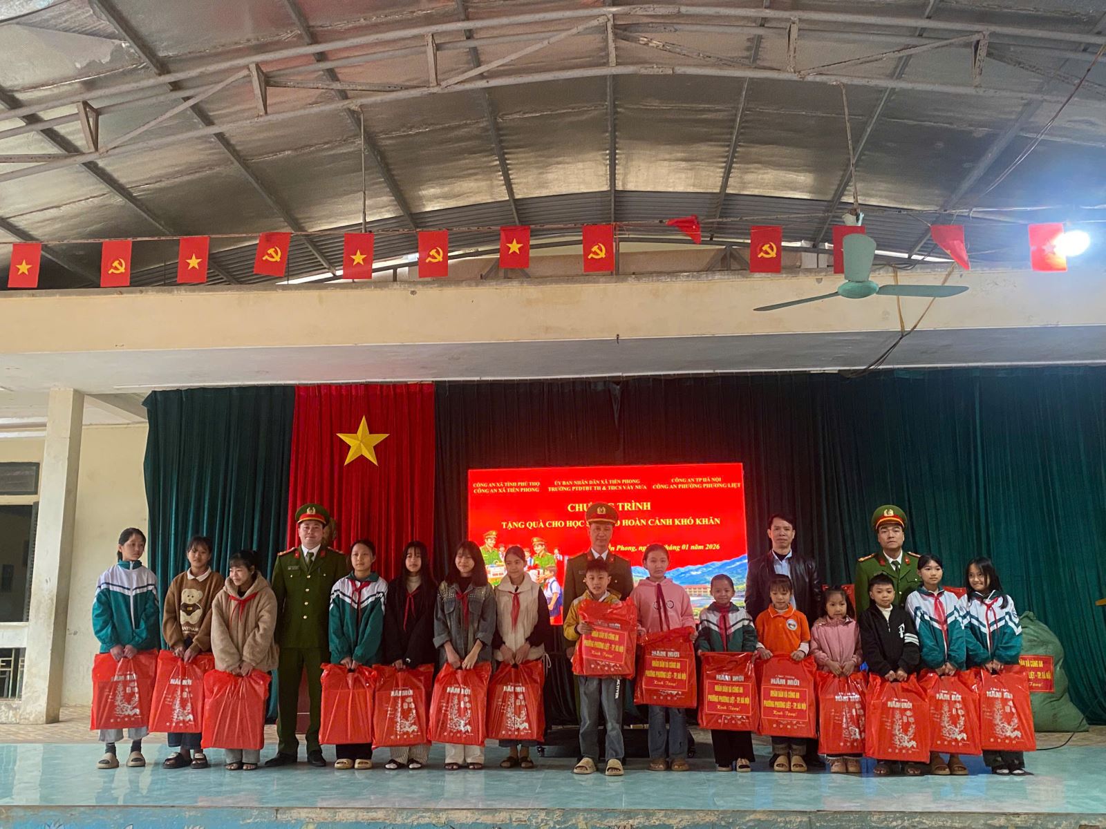 Nhân dịp này, Công an xã Tiền Phong đã trao tặng 30 áo ấm và 30 suất quà cho các em học sinh có hoàn cảnh khó khăn của nhà trường, góp phần động viên, khích lệ các em vươn lên trong học tập và rèn luyện.