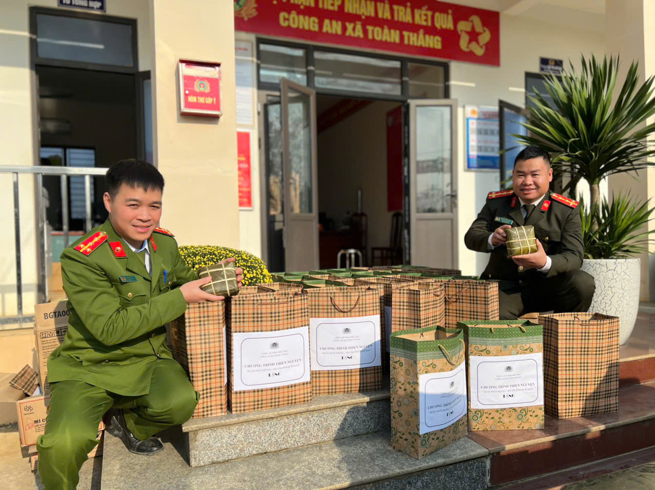 Mỗi suất quà gồm chăn bông và các nhu yếu phẩm thiết yếu phục vụ sinh hoạt hằng ngày. Đặc biệt, trong mỗi phần quà còn có bánh chưng truyền thống do chính tay cán bộ, chiến sĩ Công an xã cùng nhau chuẩn bị, gói và nấu. Những chiếc bánh chưng được làm bằng sự tận tâm, trách nhiệm và tình cảm chân thành, góp phần mang không khí Tết đến gần hơn với các gia đình còn nhiều khó khăn.