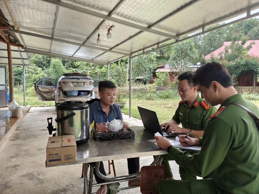 Công an xã xuống từng hộ gia đình để thu thập thông tin phương tiện và Giấy phép lái xe