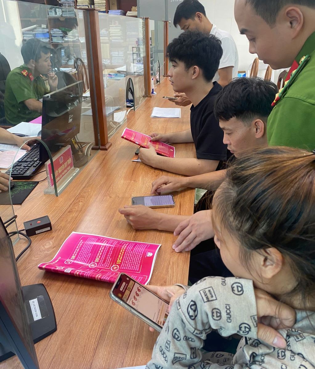 Công dân xã Tu Vũ đến cơ quan chức năng để tham gia lấy ý kiến qua ứng dụng VNeID