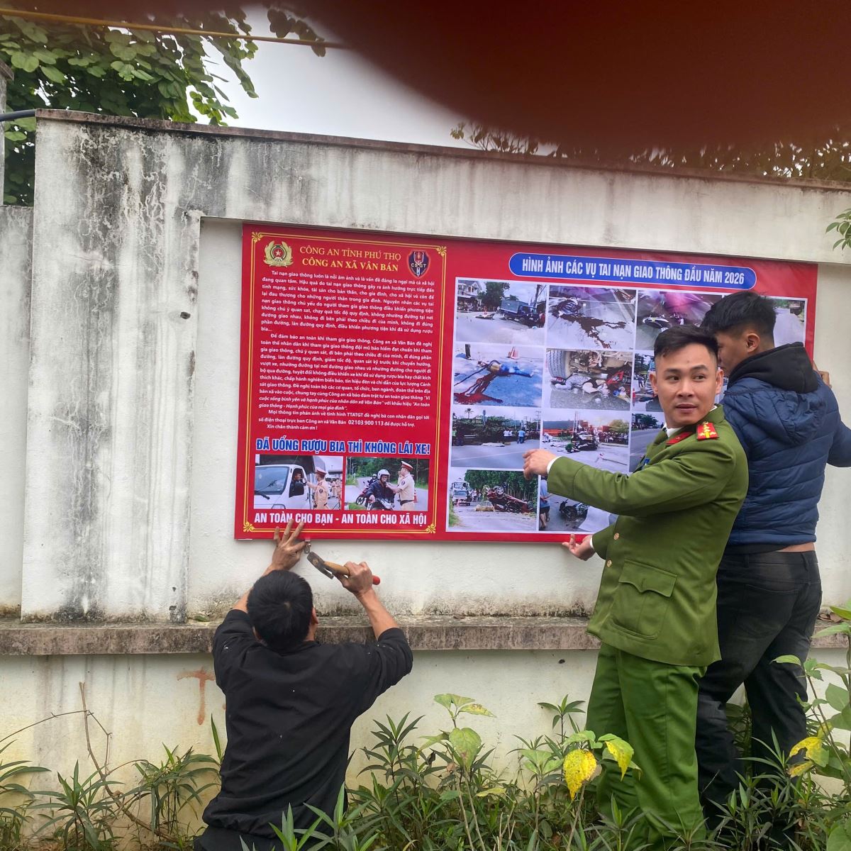 Song song với công tác tuần tra, kiểm soát, Công an xã Vân Bán đặc biệt chú trọng công tác tuyên truyền pháp luật, xác định đây là giải pháp căn cơ nhằm nâng cao ý thức tự giác chấp hành của người dân. Đơn vị đã tổ chức in ấn, lắp đặt pano, áp phích tuyên truyền tại 12 điểm tập trung đông dân cư như trụ sở cơ quan, trường học, chợ, khu dân cư và các tuyến đường chính. Nội dung tuyên truyền tập trung vào chấp hành pháp luật về trật tự an toàn giao thông, phòng chống tội phạm, tệ nạn xã hội, góp phần tạo hiệu ứng tuyên truyền trực quan, dễ tiếp cận.