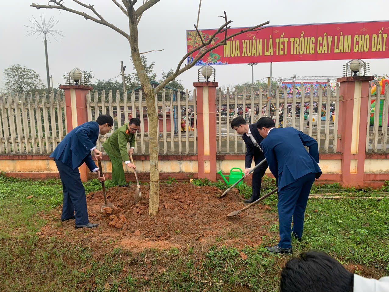 Tại khuôn viên Trung tâm văn hóa xã Vân Bán, mặc dù thời tiết có mưa nhẹ và se lạnh, cán bộ, chiến sĩ Công an xã vẫn khẩn trương phối hợp với các lực lượng tham gia trồng cây theo kế hoạch đã đề ra. Các phần việc được triển khai bảo đảm đúng kỹ thuật, phù hợp quy hoạch khuôn viên, góp phần từng bước hoàn thiện cảnh quan môi trường sinh hoạt cộng đồng tại địa phương.