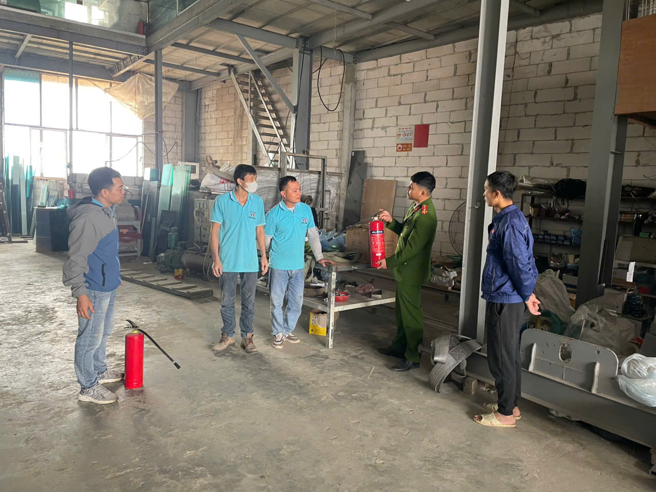 Công an xã Văn Lang hướng dẫn sử dụng phương tiện chữa cháy tại các doanh nghiệp
