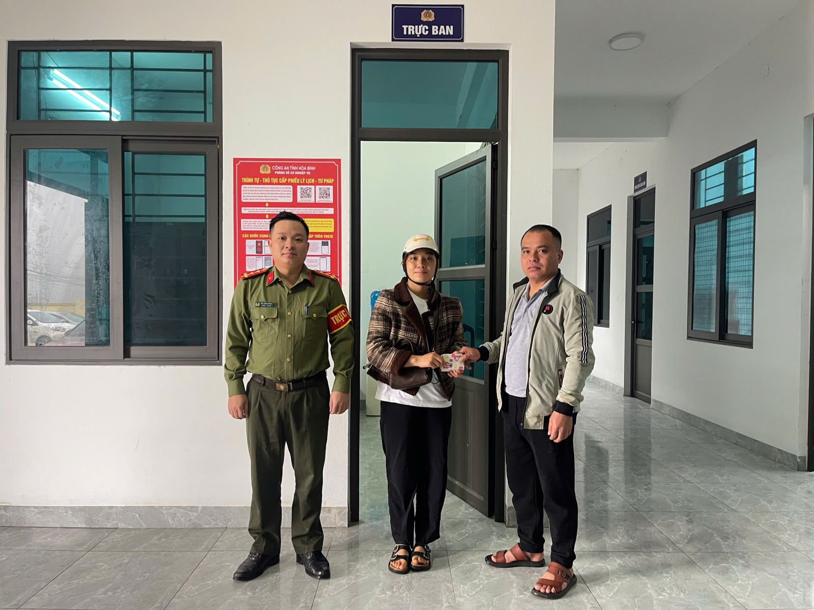 Ngay sau khi tiếp nhận thông tin, đồng chí Đại úy Bùi Thanh Huỳnh, cán bộ trực ban Công an xã đã báo cáo Chỉ huy Công an xã và phối hợp với tổ công tác tiến hành kiểm tra, xác minh. Dữ liệu từ hệ thống quản lý dân cư và thông tin địa bàn đã được rà soát ngay trong buổi trưa cùng ngày để xác định địa chỉ cư trú của chị Đinh Thị Trang, sinh năm 2002, trú tại xóm Hày Trên, xã Vân Sơn. Khi xác minh trùng khớp, Công an xã đã liên hệ và mời chị Trang đến trụ sở để nhận lại tài sản.