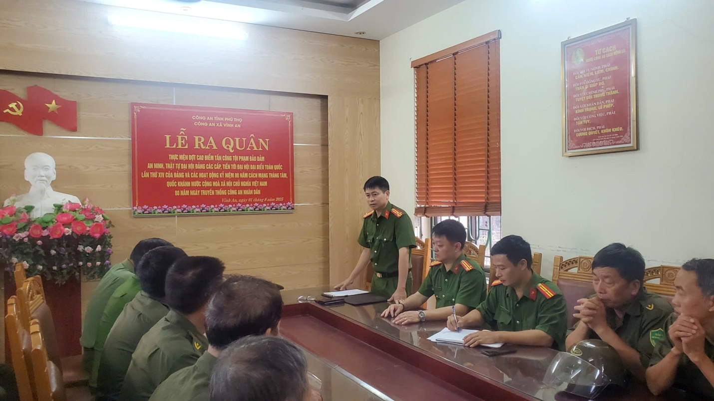 Đồng chí Thượng tá Chử Khắc Hoài- Trưởng Công an xã quán triệt, giao nhiệm vụ cho
