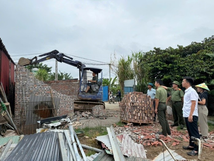Trong thời gian qua, Công an xã đã phối hợp với cơ quan chức năng và các thôn rà soát, phát hiện một số trường hợp có hành vi vi phạm. Ngay sau khi phát hiện có vi phạm, Công an xã đã chủ động tham mưu UBND xã chỉ đạo các cơ quan chức năng nhanh chóng có mặt để phối hợp với các thôn tiến hành lập hồ sơ để xử lý nghiêm theo quy định; đồng thời tổ chức tuyên truyền, vận động các hộ gia đình có liên quan nhanh chóng tháo dỡ công trình vi phạm, khắc phục hậu quả, trả lại hiện trạng ban đầu của đất.