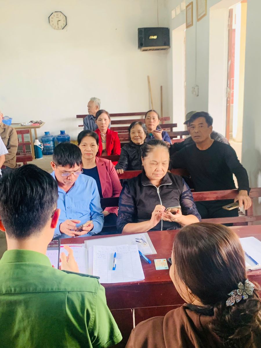 Cán bộ Công an xã Vĩnh Chân hướng dẫn người dân thực hiện các thủ tục liên quan cư trú trên phần mềm VneID